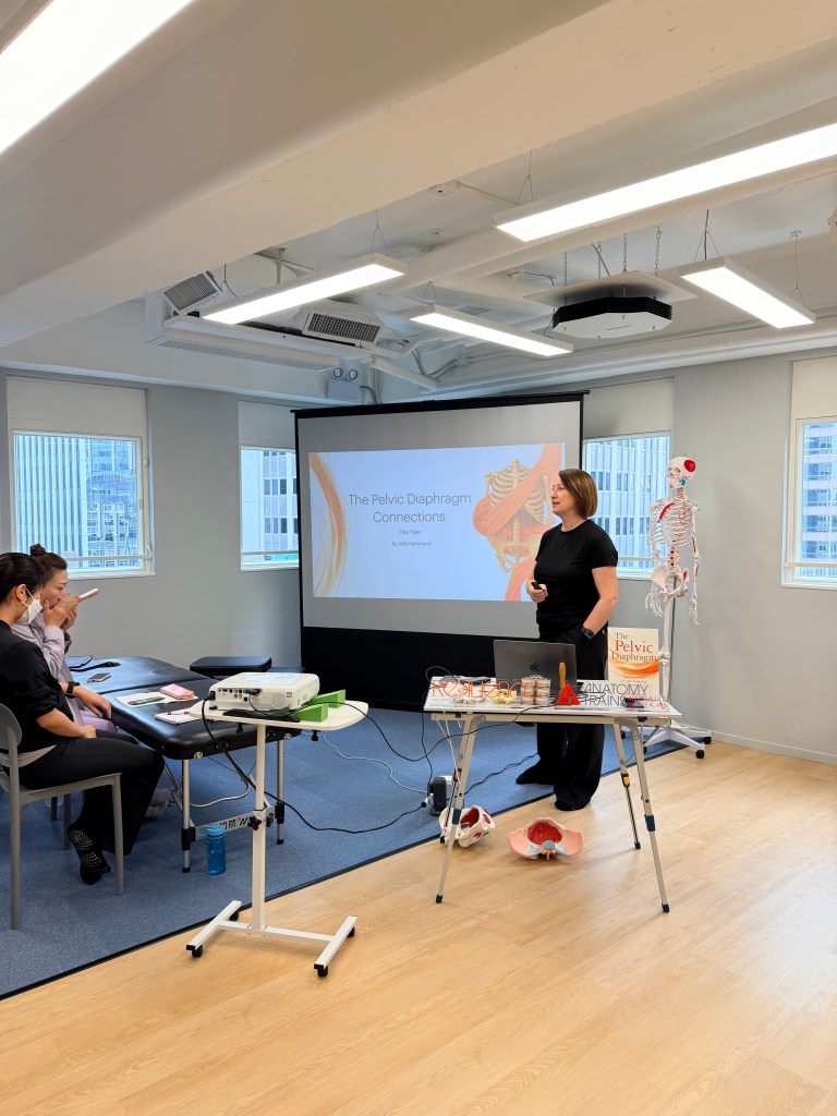 After 3 years, Julie brings her first and just-published book to Hong Kong, 《The pelvic diaphragm: Treating pain and dysfunction from a global anatomical perspective》. Her passion for and knowledge of human anatomy are well known, and she doesn’t hold back when she teaches.